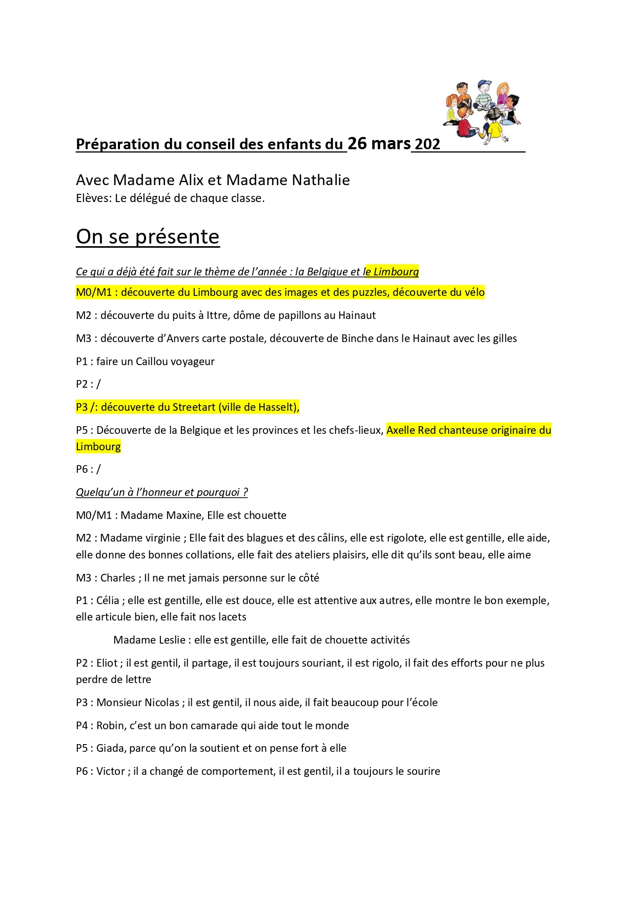 Conseil des enfants du 26 mars 2026